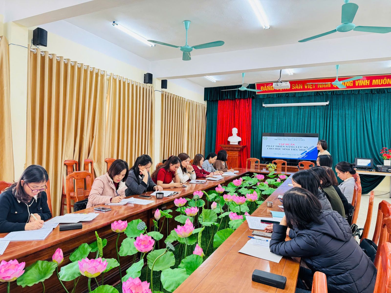 Thực hiện thông tư số số 02/2025/TT-BGDĐT ngày 24/01/2025; Công văn số 3456/BGDĐT- GDPT V/v hướng dẫn triển khai thực hiện khung năng lực số cho học sinh phổ thông và học viên giáo dục thường xuyên ngày 27/6/2025; Thực hiện Kế hoạch số 48/KH-SGDĐT ngày 30/10/2025 của Sở GD&ĐT Ninh Bình. Trường Tiểu học Liêm Tuyền đã tổ chức tập huấn cấp trường để triển khai khung năng lực số vào kế hoạch giáo dục nhà trường.